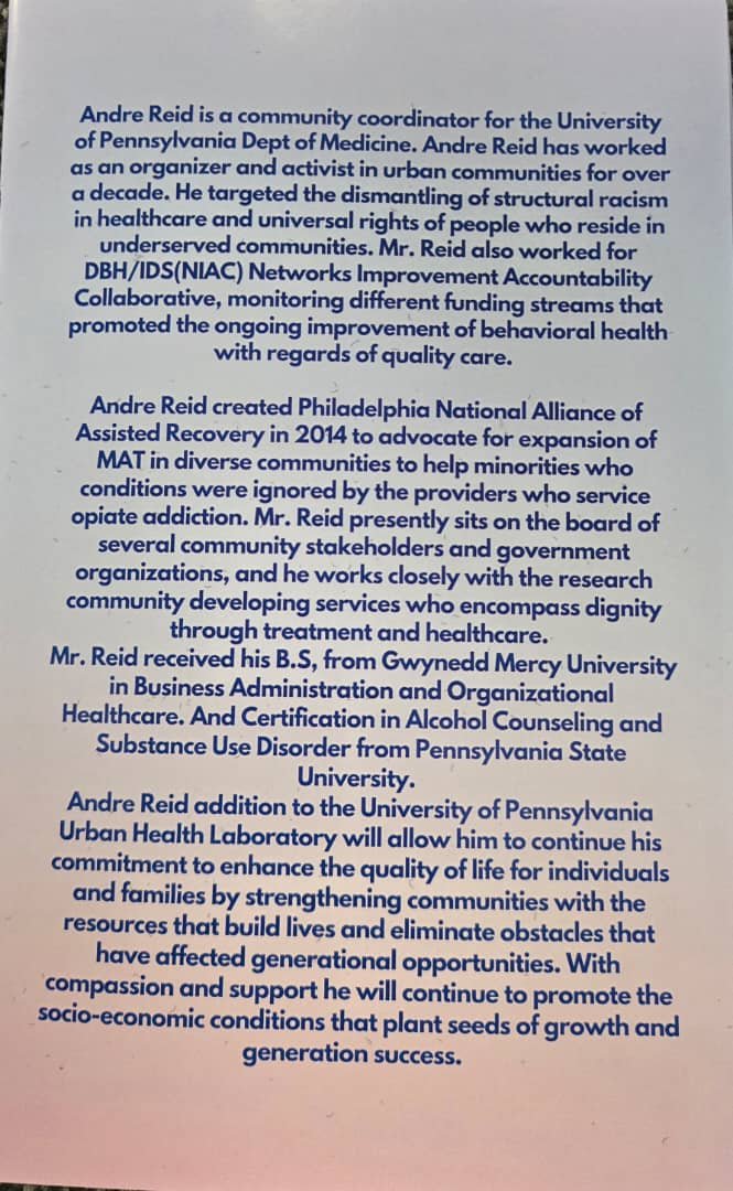 Andre Reid discusses the opioid crisis and recovery advocacy efforts in underserved communities across Philadelphia.